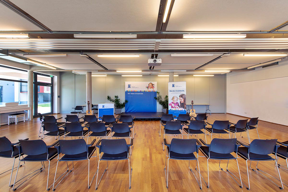 Der Bildungscampus besteht aus mehreren Baukörpern, die in unterschiedlichen Bauabschnitten im laufenden Betrieb geplant und gebaut wurden. Insgesamt sind bereits vier Neubauten auf dem Campus in Bentwisch sowie eine Energiezentrale (BHKW) entstanden und ein weiteres Bauvorhaben befindet sich in Planung. Der erste Neubau, ein Unterrichtsgebäude, wurde 2016 eingeweiht, 2017 wurde das Logistikzentrum fertiggestellt. Hier sind Räumlichkeiten zur Speisenversorgung und neue Büros, Verwaltungs- und Personalbereiche entstanden. Im Juni 2019 wurde der Standort um noch ein zusätzliches Unterrichts-und Bibliotheksgebäude erweitert. In naher Zukunft wird der Bau des ergänzendes Hörsaalgebäudes mit Büro- und Archivbereichen beginnen, die zugehörige AFUPlanung hat unser Büro bereits abgeschlossen. Auch zukünftig sind noch weitere Ergänzungen möglich. Die Freianlagen des neuen Campus sind, in Anlehnung an englische Landschafts-Parks, als weitläufige fließende Grünanlagen mit einem See und heimischen Gehölzen geplant.