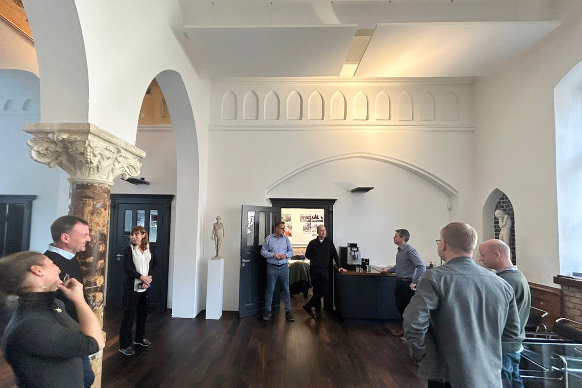 Am 05.11.2025 hatten wir als Architekten die Möglichkeit, im Rahmen eines Projektes der Wirtschaftsförderung Rostock zwischen öffentlichen Partnern aus Polen, Schweden, Dänemark und Litauen die Aspekte der Kreislaufwirtschaft im Bausektor zu diskutieren – in dieser baltischen Runde konnten wir unsere Erfahrungen bei Neubauten und Denkmalen, wie z.B. der Kunsthalle Rostock teilen: und zum Anfassen hier die denkmalpflegerischen Umnutzung und Sanierung der historischen Paketschalterhalle im Telegraphenamt Rostocks in unseren Räumen des Architekturbüros!