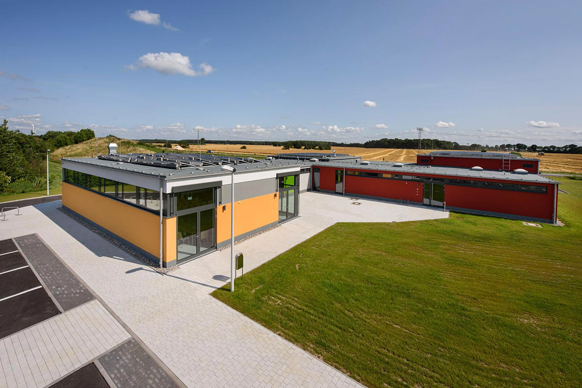 Für die Gemeinde Poppendorf wurde ein multifunktioneller Kommunal-Gebäudekomplex errichtet, der aus einem neuen Gebäude zur Unterbringung der Freiwilligen Feuerwehr, einem Veranstaltungsgebäude mit Mehrzwecksaal inkl. Küche, Lager und Nebenflächen, einem Verwaltungsbereich mit Bürgermeister und einem Kommunaltechnik-Bereich besteht. Es gibt für diese Nutzungen unterschiedlichste Hallenbereiche, die auch zukünftig erweitert werden können. Für die Planung des Gesamt-Ensembles wurde ein übergreifendes optimiertes Gebäude-Energiekonzept entwickelt, welches das Ziel hat, durch die Nutzung regenerativer Energien in Form von Photovoltaik für die Eigennutzung und Einspeisung von Strom sowie die Geothermie-Nutzung die Betriebskosten des Gebäudes zu minimieren.