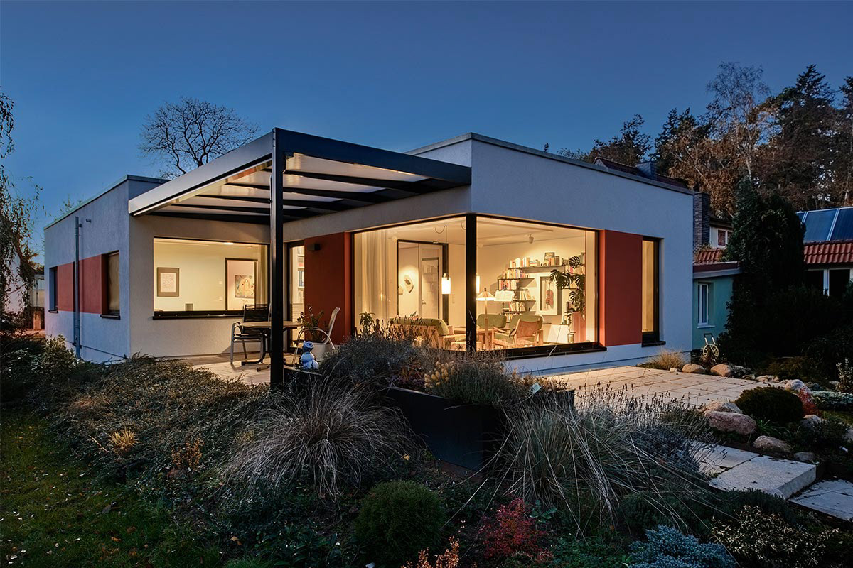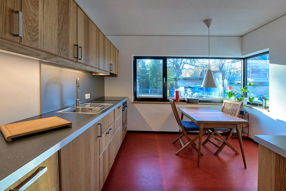 Die Aufgabe lautete eine einfache, finanziell schmale Behausung für Jung und Alt zugleich zu entwickeln, die mit seinen Bewohnern intelligent mitwächst. Technisch ist die Realisierung denkbar einfach, aber wirksam umgesetzt: 1. Kostenminimierung: Die Gebäudekosten werden dank klarer Grundrissstruktur und dadurch einfach zu realisierender Baukonstruktion möglichst gering gehalten. Auf den Einsatz nachhaltiger Materialien und Baustoffe wurde besonders Wert gelegt. 2. Flexibilität: Es wird ein mehrgeschossiges Haus geplant und der erste Bauabschnitt als Erd- bzw. Sockelgeschoss, mit Sicht auf alle Anschlusspunkte zu den Obergeschossen und im Detail auf Statik und Brandschutz, realisiert. 3. Innovative Gebäudetechnik: Das Haus ist regenerativ mit Solarthermie (Flachkollektoren mit Warmwasserspeicher), einer zentralen Lüftungsanlage mit Wärmerückgewinnung sowie Fußbodenheizung, vorgerüstet zum späteren Anschluss einer Wärmepumpenanlage (Geothermie), ausgestattet und dahingehend jederzeit problemlos erweiterbar. 4. Langlebigkeit/maximierter Lebenszyklus: Der Fußabdruck dieses Gebäudes wird durch die überdurchschnittlich erhöhte Nutzungsdauer zukünftig wesentlich geringer. Nachhaltigkeit pur.